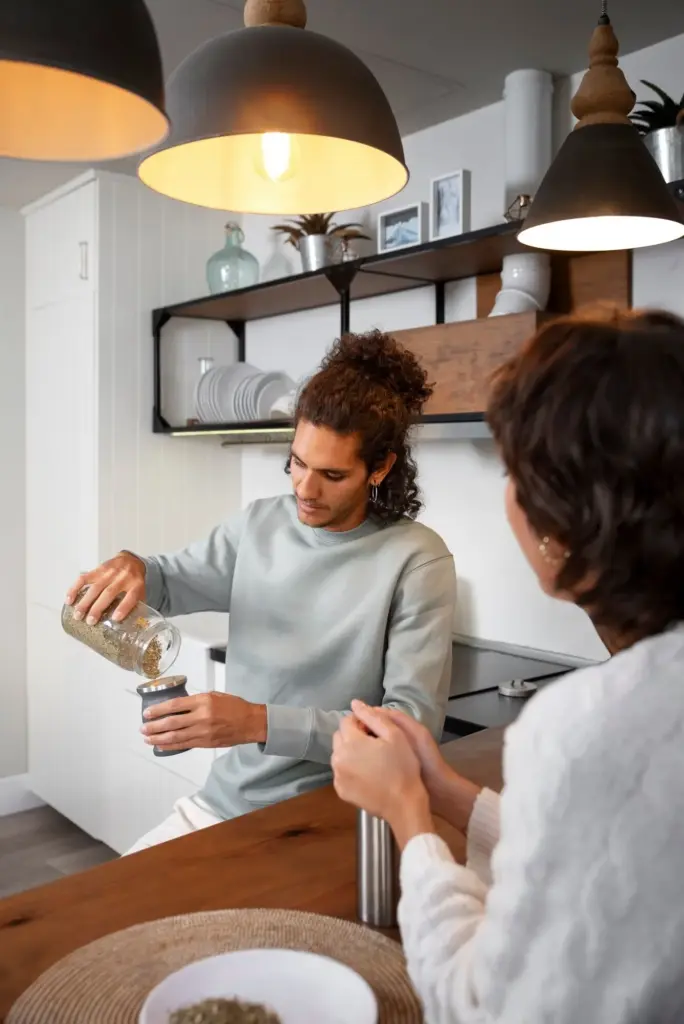 Positioniere Alltagsobjekte so, dass du natürlich öfter aufstehst: Der Papierkorb steht nicht neben dem Schreibtisch, der Drucker im Nebenraum, die Gießkanne auf dem Balkon. Eine leichte Hürde – nicht lästig, nur bewusst – macht den Körper munter. Verlege Snacks etwas weiter weg als Wasser und Obst. Gestalte Telefonate als Geh-Gespräche, indem du das Headset in der Garderobe lagerst. Kleine Umwege ergeben viele Schritte. Teile deine cleversten Umplatzierungen, damit andere sie erproben und an ihre Wohnung anpassen.